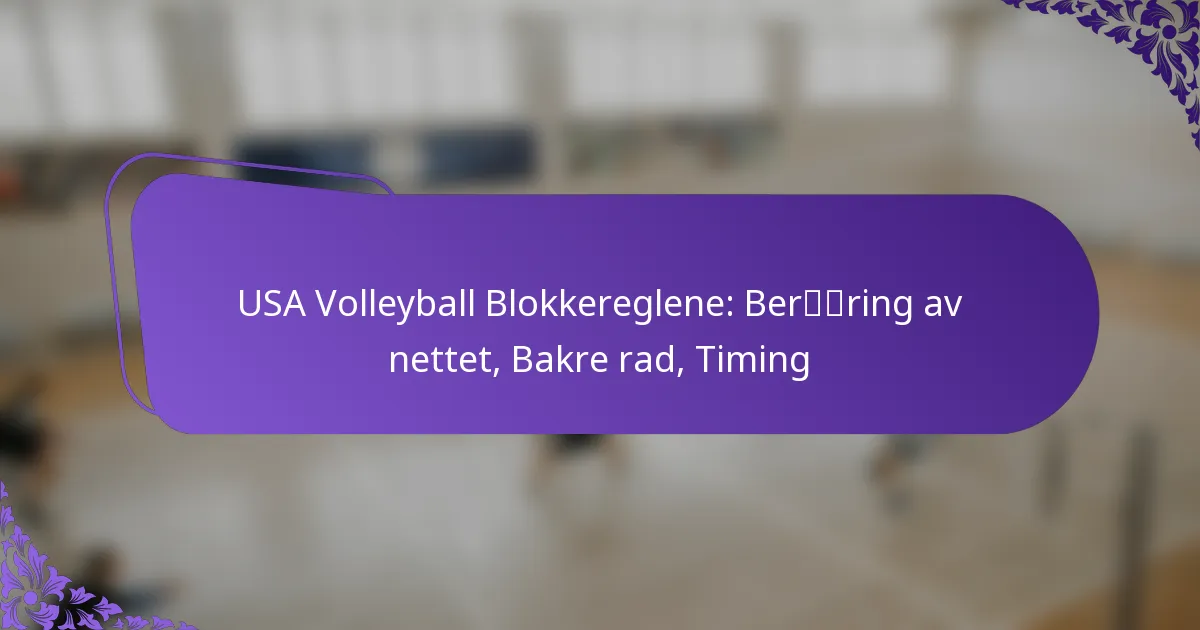 Å forstå blokkereglene i USA Volleyball er avgjørende for spillere for å unngå straff og forbedre sine defensive strategier. Nøkkelaspekter inkluderer konsekvensene av å berøre nettet, rollen til bakre spillere i blokkering, og viktigheten av timing for effektiv utførelse. Å mestre disse elementene kan ha betydelig innvirkning på et lags prestasjoner under kamper. Key sections… Read More »
