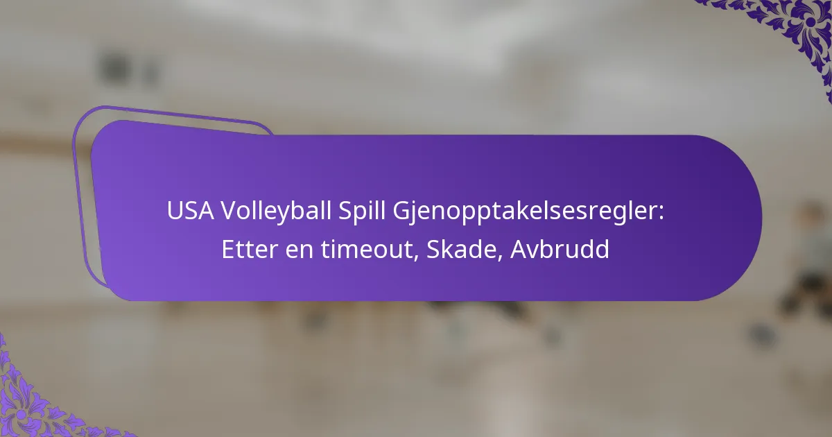 I USA Volleyball har spillet spesifikke regler for gjenopptakelse etter timeouts, skader eller avbrudd for å opprettholde rettferdighet og klarhet. Lagene må følge etablerte protokoller, inkludert å varsle dommeren og være klare til å serve innen en bestemt tidsramme. Disse retningslinjene sikrer spillernes sikkerhet og en jevn fortsettelse av kampen. Key sections in the article:… Read More »